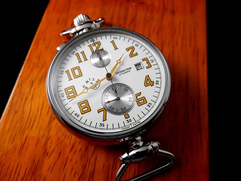 The overall design of this chronograph dates back to the early-2000s, with initial pieces branded Poljot, then Aviator (Wright Brothers), and finally 1MWF (initially produced by Volmax?) as we see here. Only minor changes to the casing are visible today, with the "No 100" (presumably related to the 100th anniversary of the Wright Brothers flight at Kitty Hawk, North Carolina, in 1903), still inscribed on the bow hinge. Of course, more often than not it is advertised as the limited edition number on a single piece. Overall a very nice chronograph, despite not having any luminance.