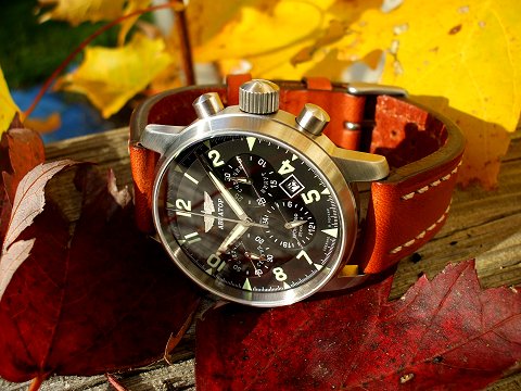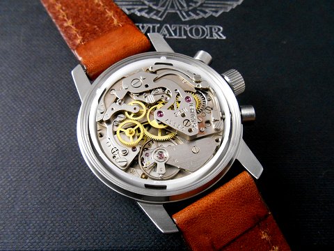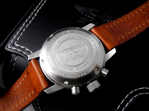 The original model had a dagger shaped chrono-seconds hand with luminous, as does the rest of the hands in the set, and mineral, not sapphire, glass. Other versions of this watch were sold with a red chrono-seconds hand similar to that of the Poljot Aviator I.