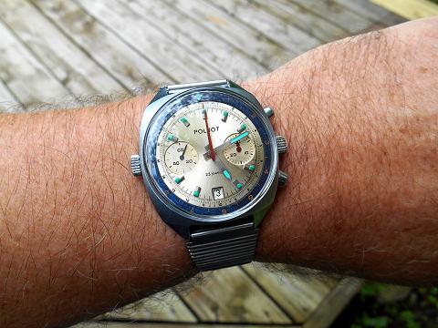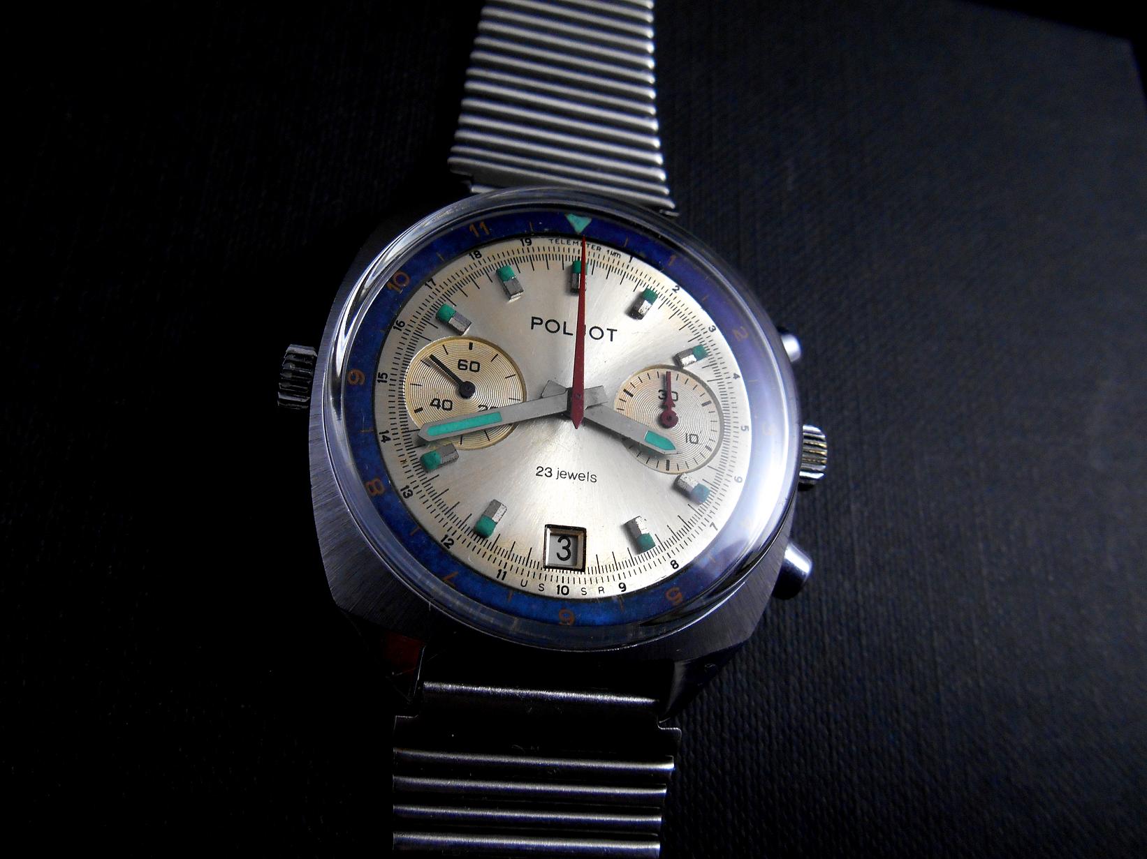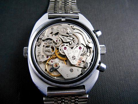 The older bezel and dial matched with a movement that was a few years older, made this watch a perfect candidate for a replacement movement that I had restored, as I believe this movement to be the sucessor to the 5-digit serial movement(s) and predecessor to all 4-digit serial numbered movement; all with the Poljot crown stamped on the chronograph-bridge.