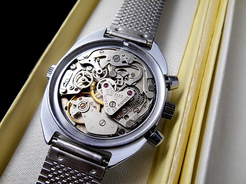 Besides the actual colour of the rotating bezel, and the NOS chrome-plated case which I intend to replace, this chronograph is identical in age and components to the one worn by Viktor Gorbatko during the 1977 Soyuz 24 mission to the Salyut space station.
