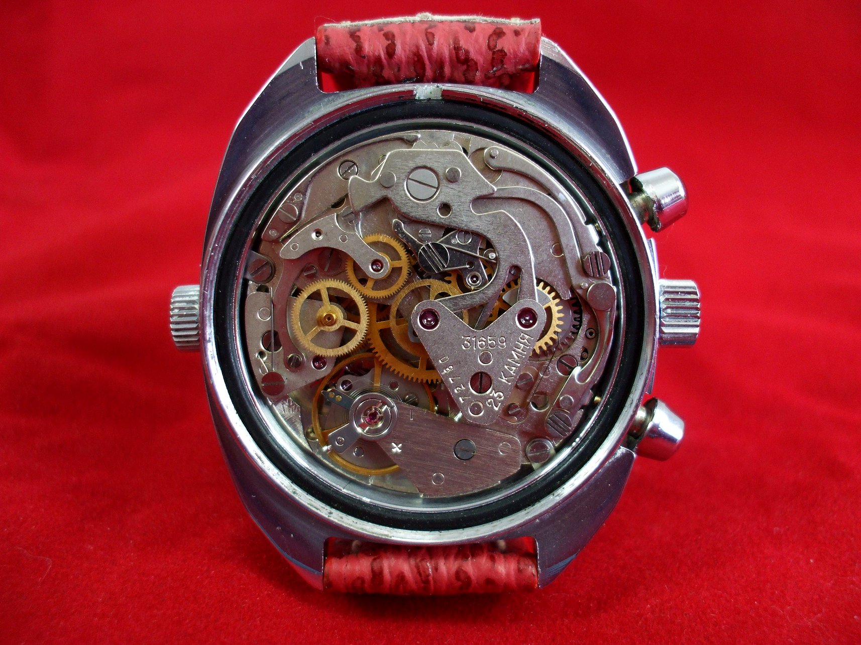 The Sturmanskie case back remained relatively unchanged throughout it's history therefore I'm limiting the number of repetitive depictions; all Sturmanskie/Aviator chronographs featured on this web site have a "Sturmanskie" stamped case back.