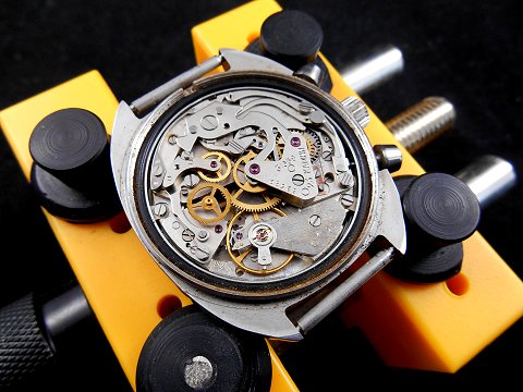 This, the military version of the the 31659 chronograph, was included as a non-functional addition in a lot auction with another fully functional early-nineties collectors' Sturmanskie. Although the mechanics of the watch were faulty, the visible components are all in very good condition, which is becoming increasingly rare to find, and I was able to fully restore the movement to it's former glory.