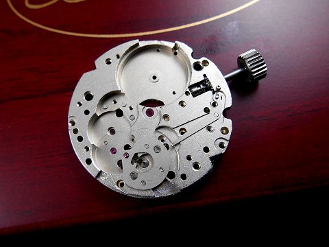 The movement as it looked upon prying open the case back. Notice the "4-90" (April, 1990) stamped on the balance bridge. She's a beauty!